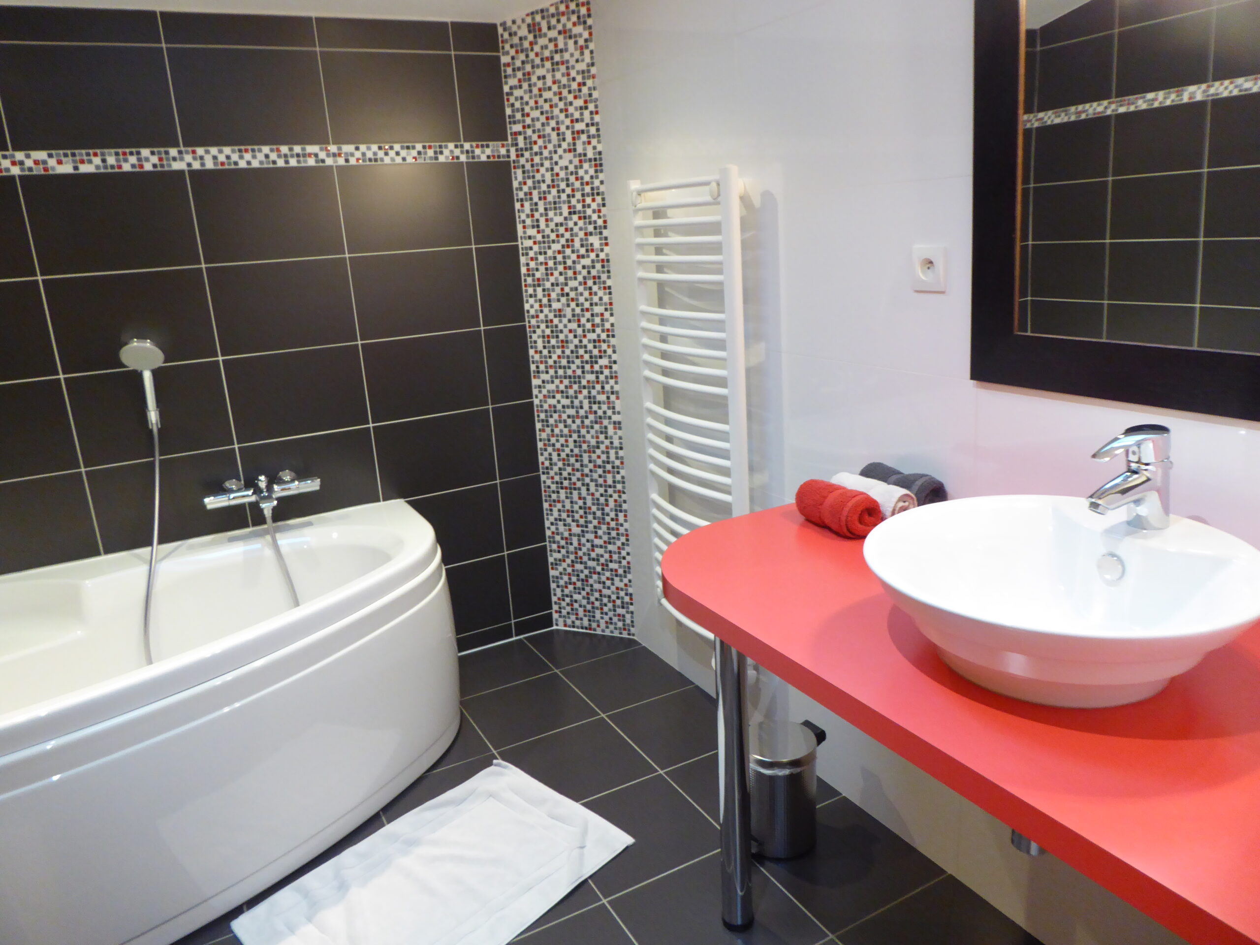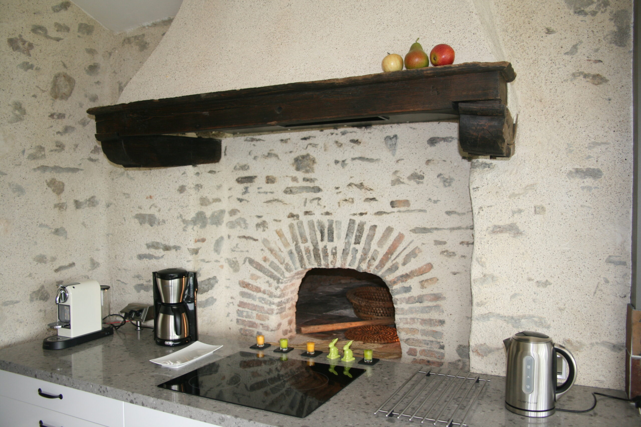 Plaque à induction – four et four micro-ondes – réfrigérateur – congélateur – L.V. – L.L. – S.L. – batterie de cuisine – autocuiseur – robot mixeur – cafetière électrique et Nespresso 16 capsules offertes – bouilloire – grille pain.