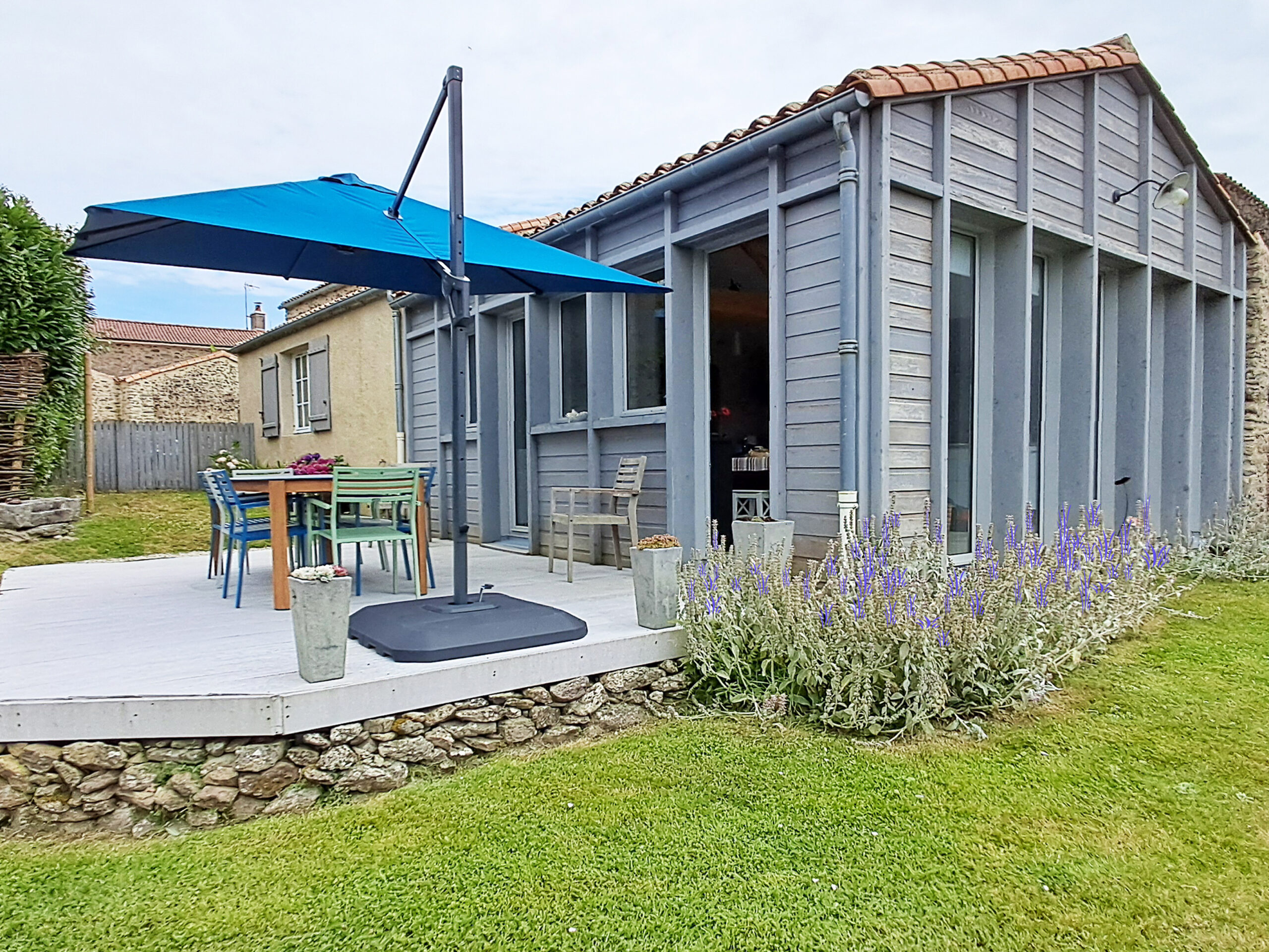 Cuisine indépendante contemporaine de 30 m² avec coin lingerie – ouverte sur terrasse de 24 m².